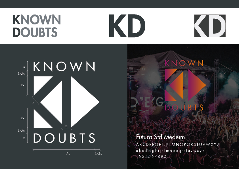 Il punto di partenza è stato il logo, costruito a partire dalla sigla KD, una sintesi potente e diretta del nome della band. La sfida era racchiudere in due lettere un universo musicale che attraversa generi e atmosfere differenti. Ho optato per un segno grafico solido, modulare e vibrante, che gioca con contrasti netti e geometrie spezzate, evocando da un lato l’energia elettrica del dubstep e dall’altro le radici organiche del reggae e del funk. Il risultato è un marchio visivo che si imprime con forza e resta impresso nella memoria.