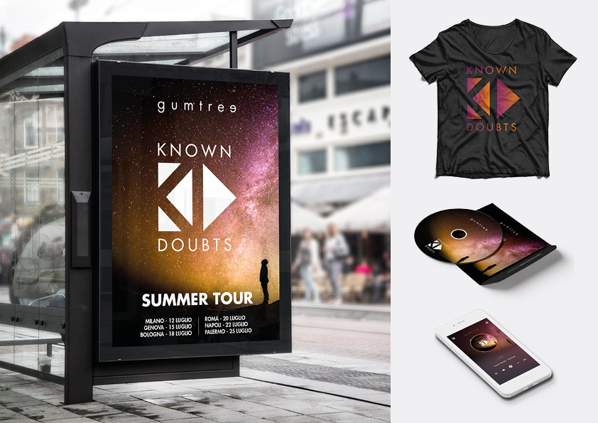 Per raccontare visivamente l’energia eclettica dei Known Doubts, band romana che fonde Funk, Reggae, Dubstep e Drum’n’Bass, ho sviluppato un’identità visiva che fosse tanto d’impatto quanto coerente con il loro sound dinamico e meticcio.