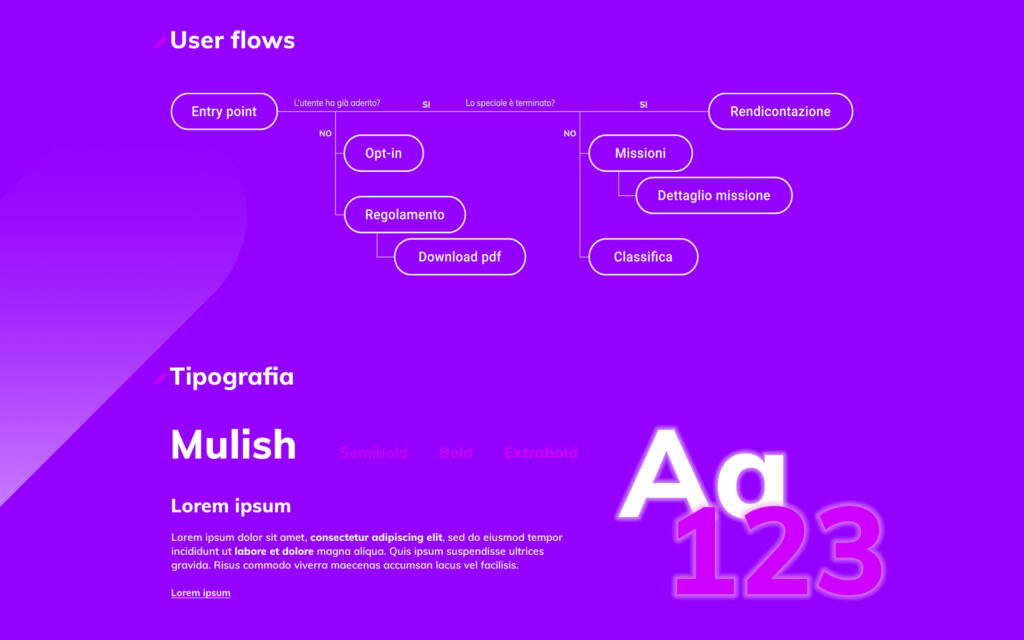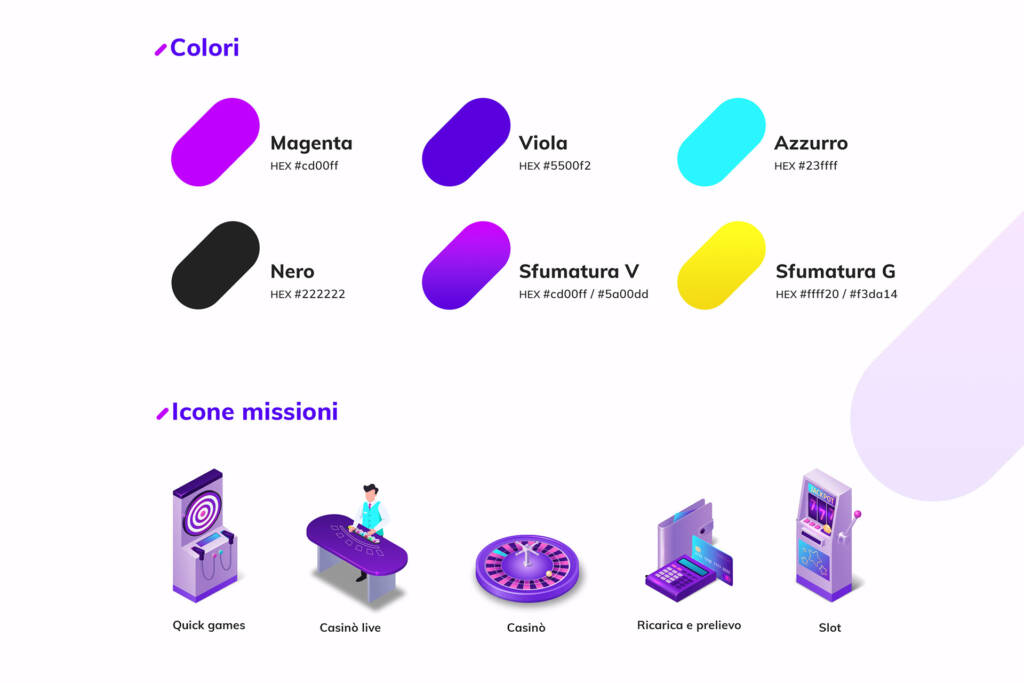 Per questo progetto ho progettato l’interfaccia di un hub promozionale digitale a tema casinò, articolato in 5 missioni che guidano l’utente attraverso un percorso di engagement a tappe. L’esperienza è stata pensata per stimolare la curiosità e la partecipazione attiva, ispirandosi all’universo visivo dei videogame.